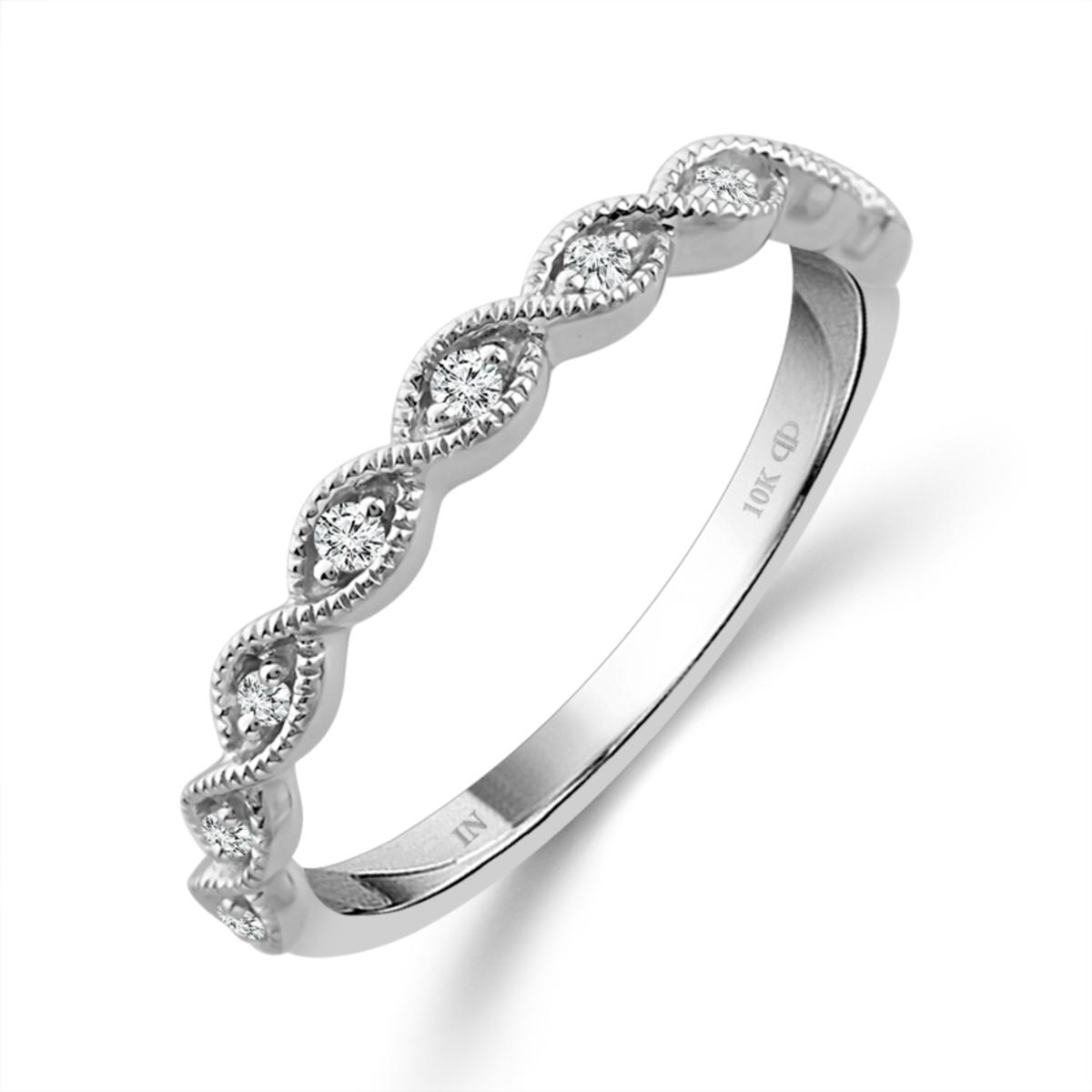 10K White Gold 1/20ctw Diamond Scalloped Band Anniversary Ring