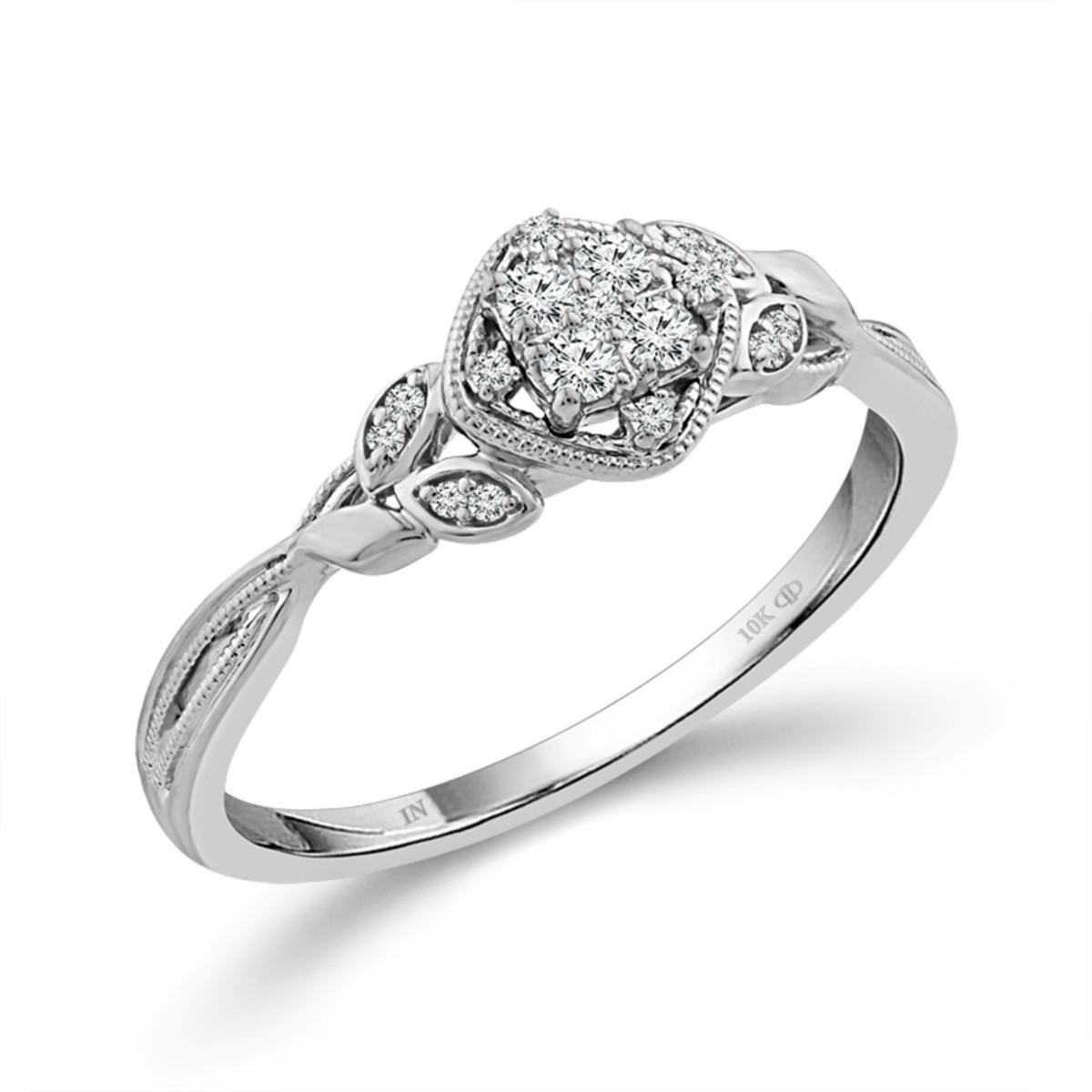 10K White Gold 1/8ctw Diamond Cushion Cluster Ring