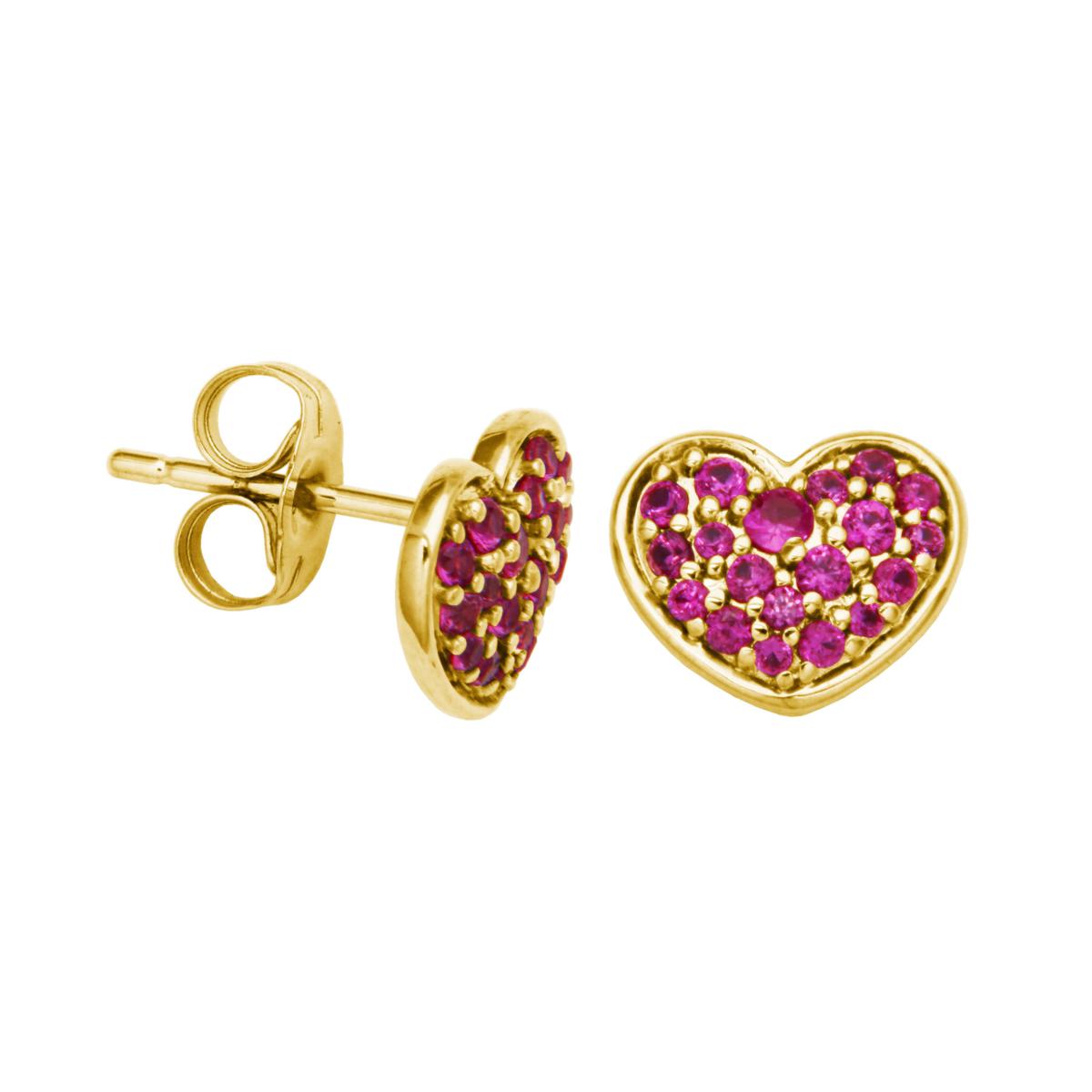 10K Yellow Gold Pavé Heart Gemstone Stud Earrings