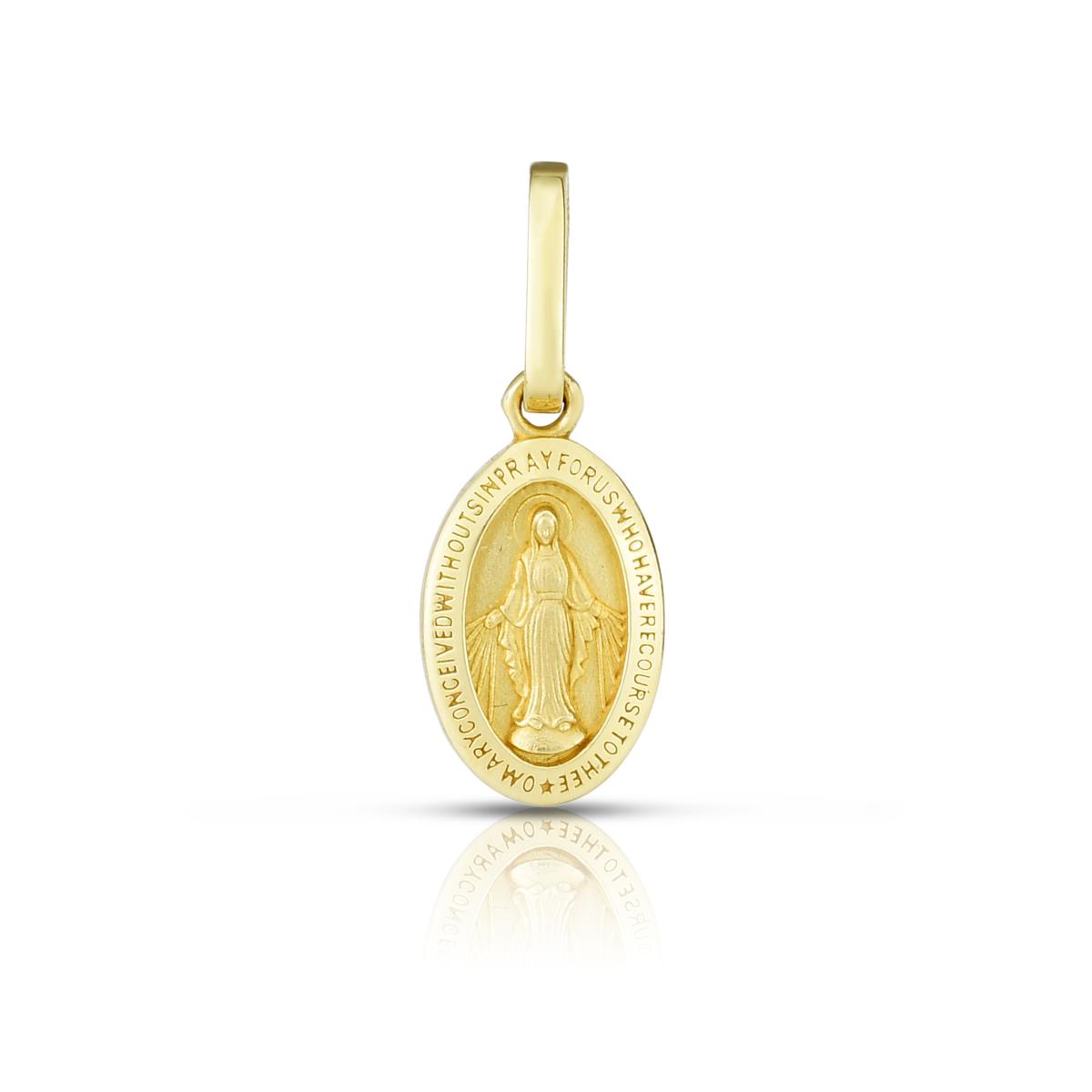 Give a gift that blends elegance with devotion. This 14K gold pendant features the beloved Miraculous Medal design, with a raised image of the Virgin Mary and the engraved prayer, “O MARY CONCEIVED WITHOUT SIN PRAY FOR US WHO HAVE RECOURSE TO THEE.” Its timeless style and meaningful symbolism make it a cherished keepsake for any special occasion.