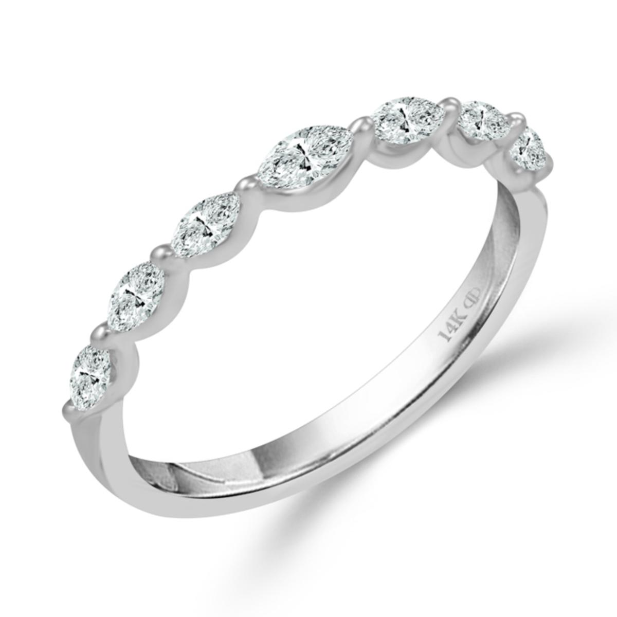 Mark a special moment with this elegant anniversary band, featuring seven marquise diamonds set in gleaming 14K white gold. Whether you’re commemorating a milestone or simply adding sparkle to your everyday look, this diamond ring brings timeless beauty to every occasion.