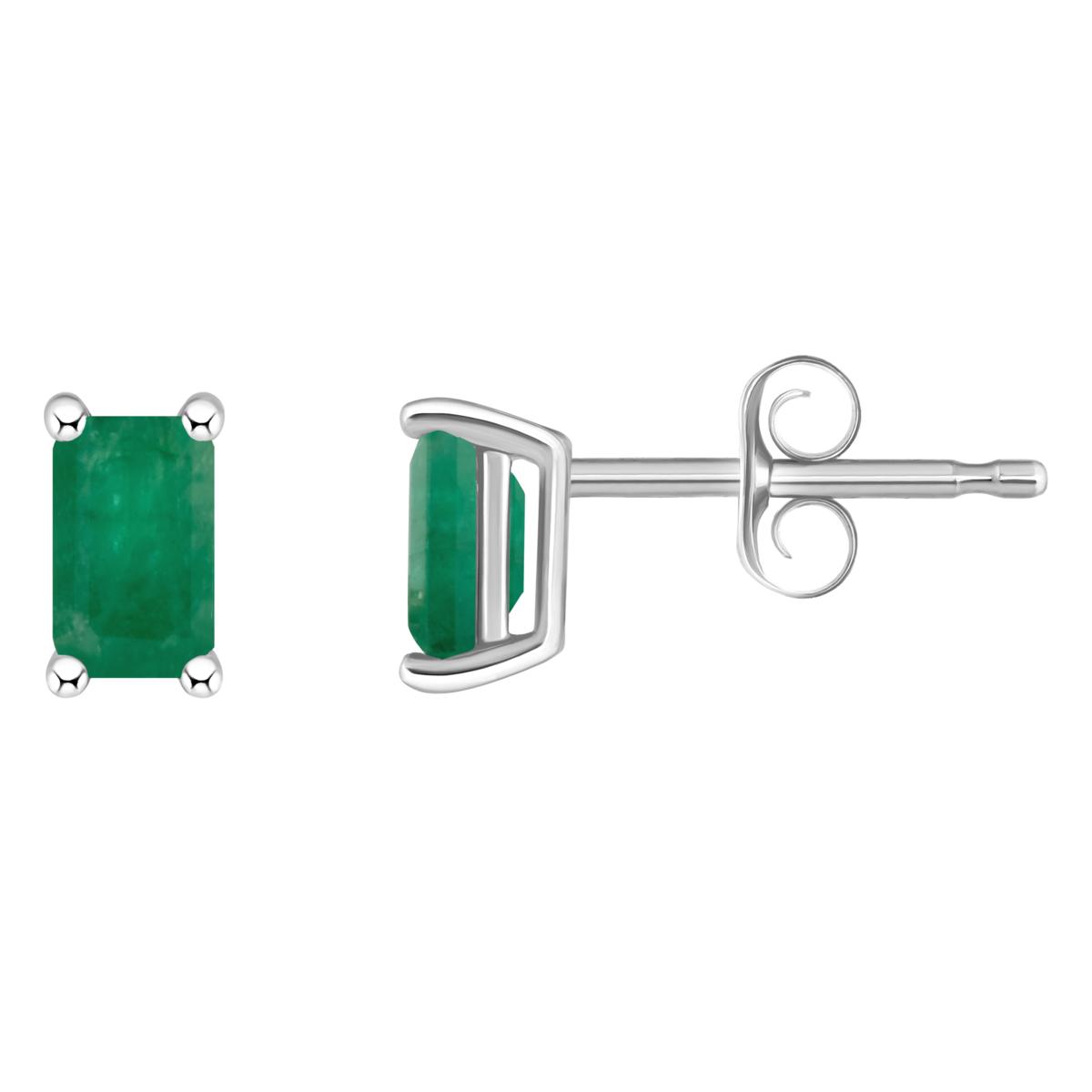 14K White Gold 5x3mm Emerald-Cut Gemstone Stud Earrings