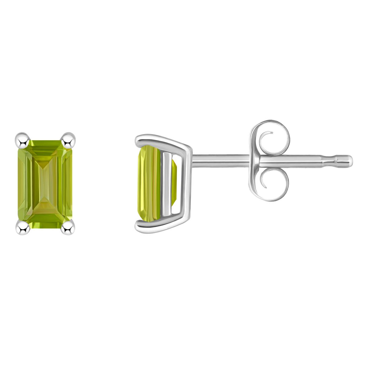 14K White Gold 5x3mm Emerald-Cut Gemstone Stud Earrings