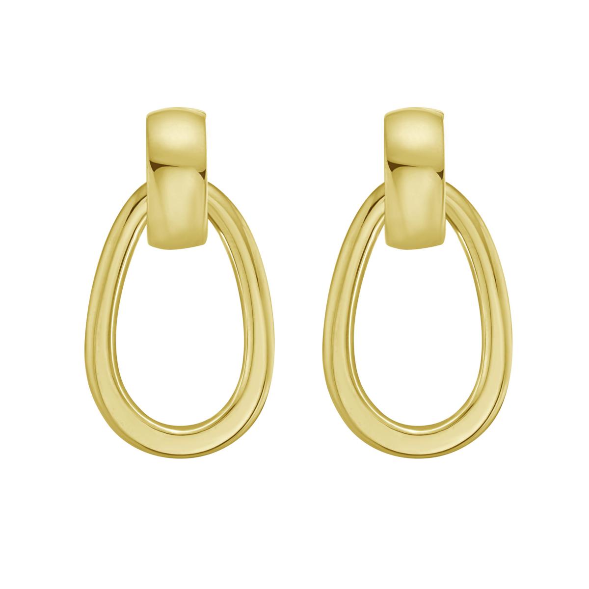 Elevate your style with these elegant 14K yellow gold interlocking dangle hoops. These polished hoops gracefully intertwine, creating a captivating look perfect for any occasion. The push-back clasp ensures a secure fit, making them an effortlessly chic choice for day-to-night wear. Whether you're dressing up for a special event or adding a touch of sophistication to your everyday ensemble, these hoops are a striking addition to any jewelry collection.