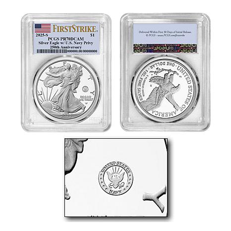 2025 PCGS PR70 Silver Eagle Navy Privy Mark First Strike Coin