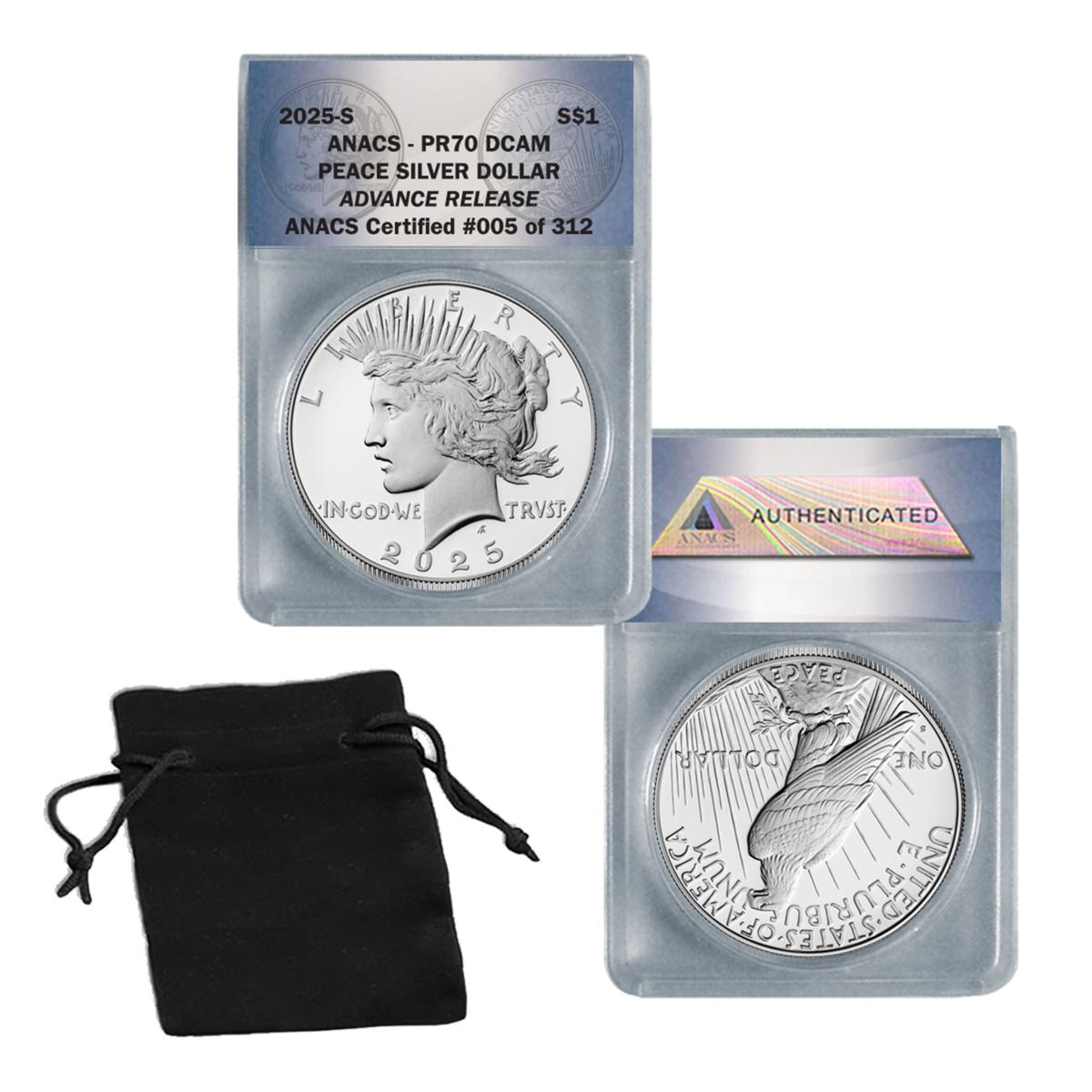 - 2025 PR70 Proof DCAM ANACS Advance Release Limited Edition 312 Peace silver dollar