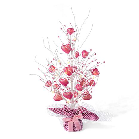 21" Indoor Table Tree with Warm White Fairy Lights & Pink Hearts
