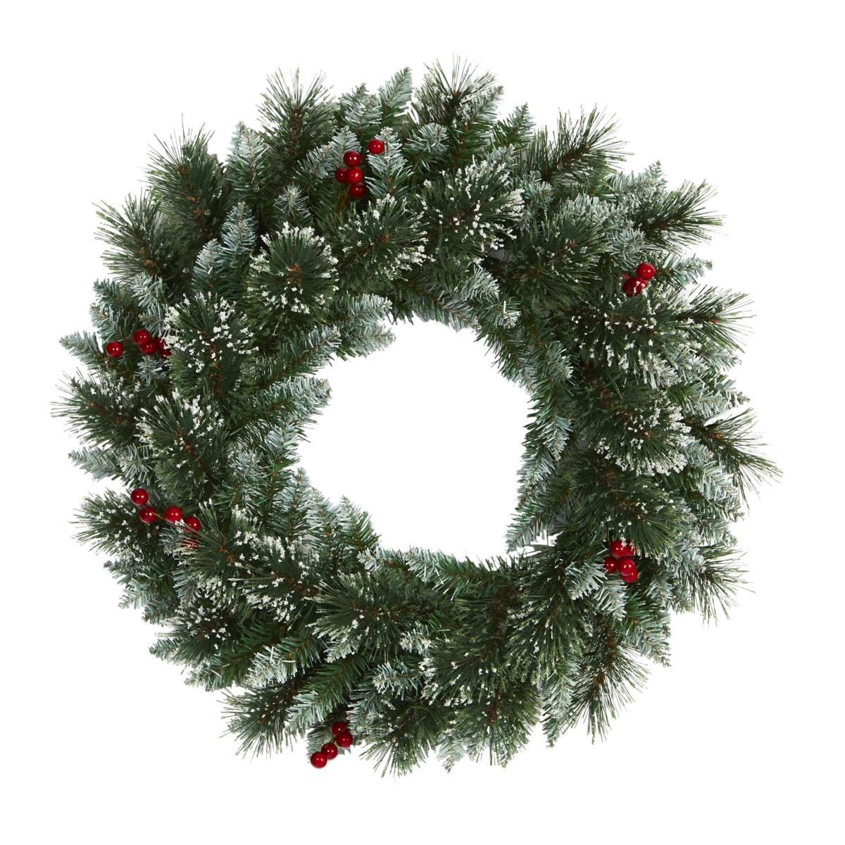 24 in. Frosted Swiss Pine Artificial Wreath with 35 Clear LED Lights and Berries
