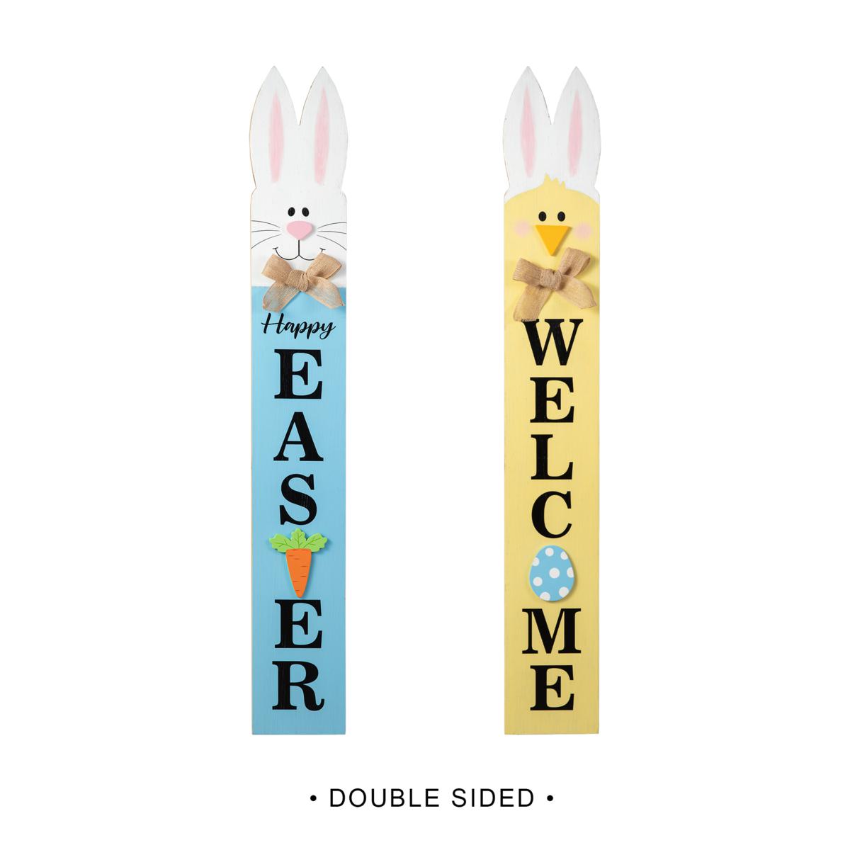42"H Wooden Double-Sided Easter Welcome Porch Sign with Bunny Ears
