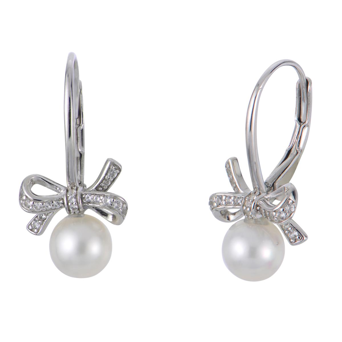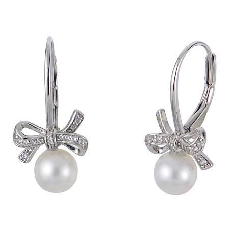 6.5-7mm Cultured Pearl and Created White Sapphire Bow Drop Earrings