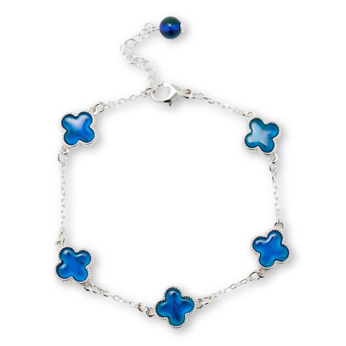 Amber Extraordinaire Sterling Silver Blue Clover Station Bracelet