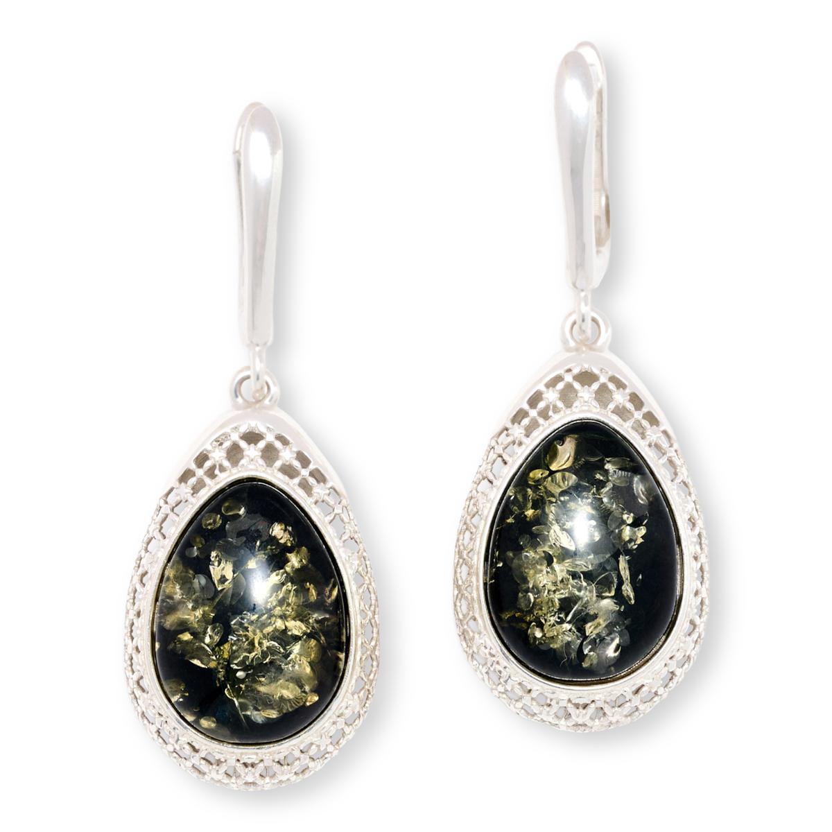 Amber Extraordinaire Sterling Silver Green Amber Pear Drop Earrings