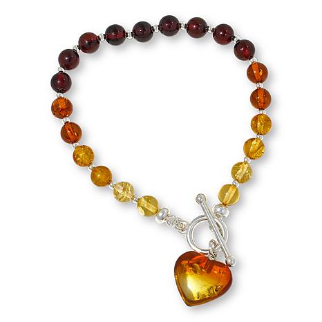 "As Is" Amber Extraordinaire Beaded Heart Drop Toggle Bracelet