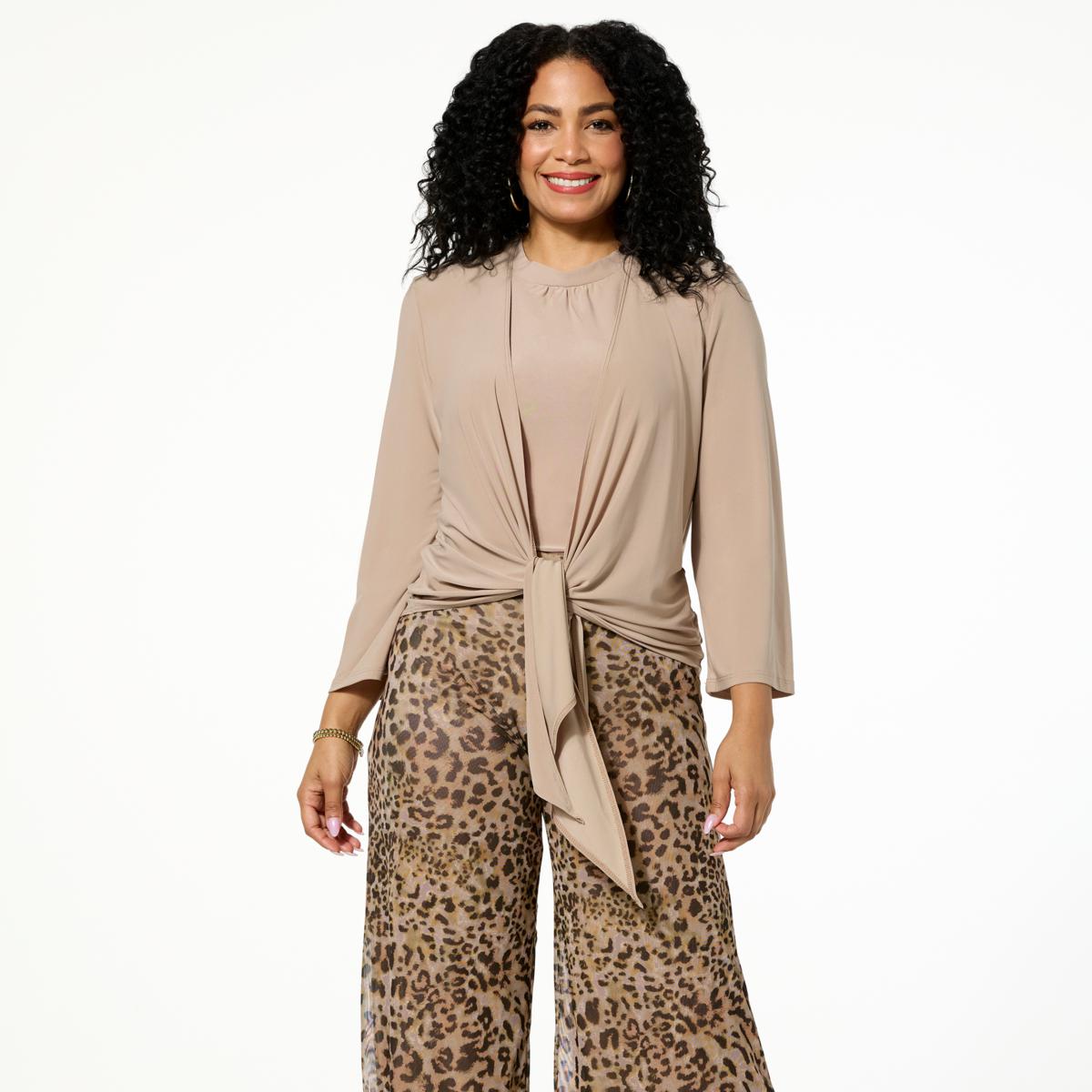 Designer Antthony has captured a distinctive, urban look in Georgette silk and other waif fabrics that easily tie, silhouette or drape. Free-flowing designs in floral, paisley and geometric patterns give you the comfort and style you deserve – perfect for fun, casual or dressy occasions. Exotic accents include sequins, beading, fringe, ruffles, crochet trim, tassels, lattice, burnout edging and embroidery, offering you a wardrobe unrivaled within your circle of friends. Coordinating shoes and a handbag work with several pieces to complete your head to toe look.