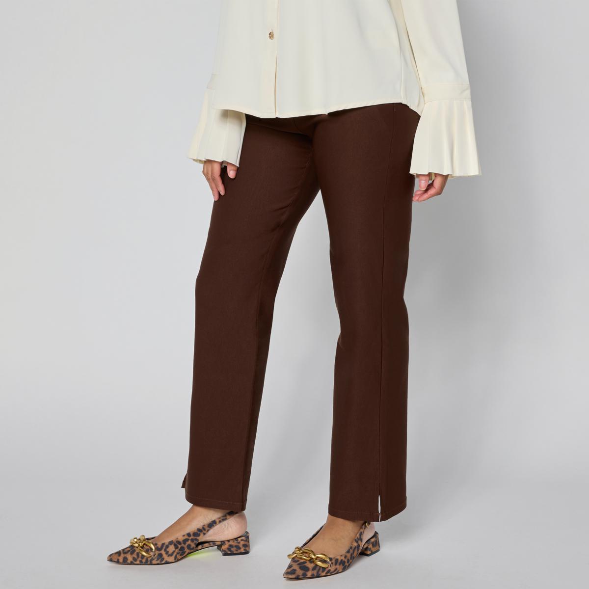 These pull-on ankle pants offer a sleek, straight-leg silhouette with a comfortable stretch fit. Perfect for dressing up or down, they feature back pockets and come in solid and plaid color options. Whether you're headed to the office or out for a casual day, these pants provide style and ease all day long.