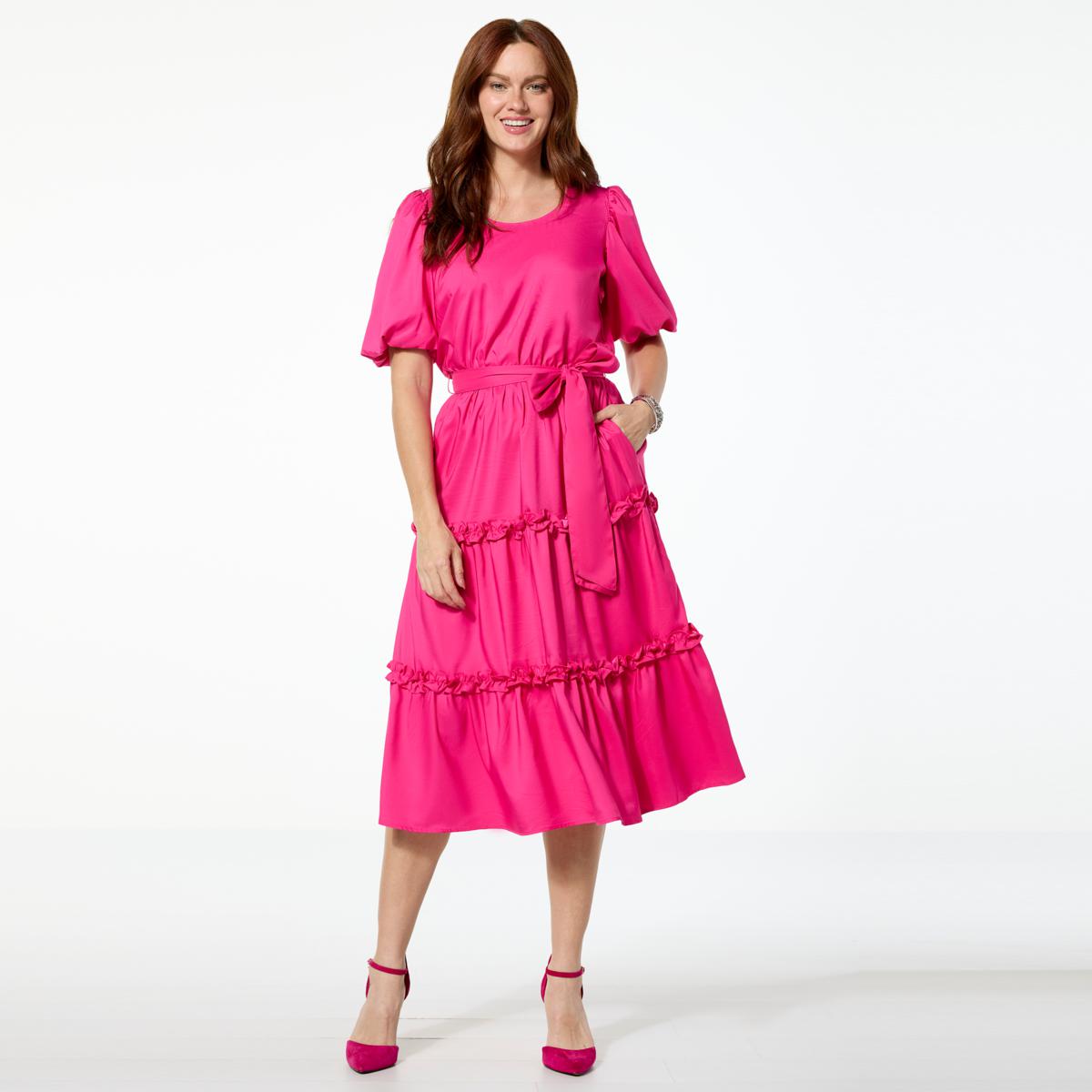 "As Is" Badgley Mischka Macie Short-Sleeve Tiered Dress