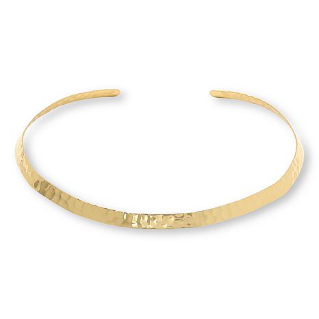 Put a dent in your list of must-have jewelry items when you add this tastefully hammered collar to your collection. It's a beautiful "un-basic" that makes a look on its own and stacked with other necklaces.