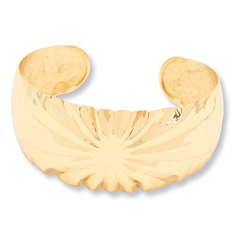 Talk about a stellar statement staple. A hammered texture gives this bracelet's dimensional, starburst design a feeling that's fresh, eye-catching and maybe even a little "out of this world." A bold way to make look anytime... and anywhere.