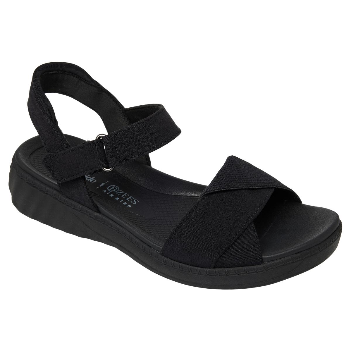Touch up your warm weather look with the BZees Lane sandal. This strapping pair sports BZEES Air Step Technology and FreeFoam™ Comfort footbeds that ensure support and a lightweight feel to keep you comfortable. Your ultimate spring (and summer) sandals! You've never met a strappy sandal quite like this.