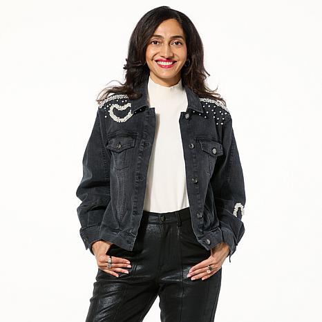 "As Is" C Wonder Faux Pearl Heart Denim Jacket