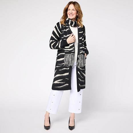 "As Is" C Wonder Jacquard Knit Coatigan Topper with Scarf