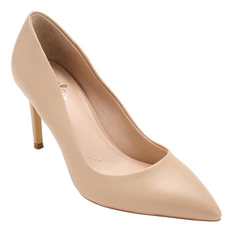 A high-heeled pump that's not so basic. The Sublime dress shoe by Charles David gives you a choice of timeless colors in Black or Linen leather or updated textures like Black/White Houndstooth fabric and croco-embossed, aluminum-colored faux leather. With a 3-1/2" heel, these sleek pumps are ready for all your dressier occasions.