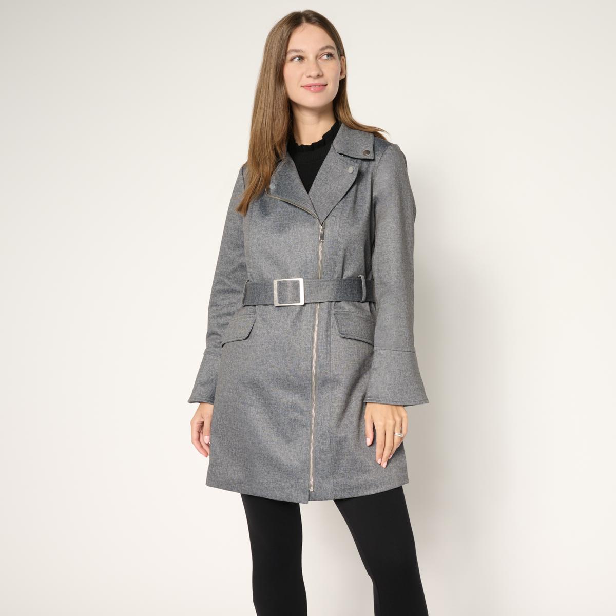 This double-breasted trench features a sleek zipper front with a convertible lapel and metal snaps for a polished look. Princess seams shape the silhouette, while the self-fabric belt with adjustable metal buckle adds a flattering touch. Fully lined with long sleeves and peplum cuffs, it’s perfect for layering on cooler days or dressing up your casual outfits.