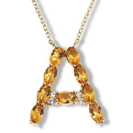 "As Is" Colleen Lopez Gemstone & White Zircon Initial Pendant w/ Chain
