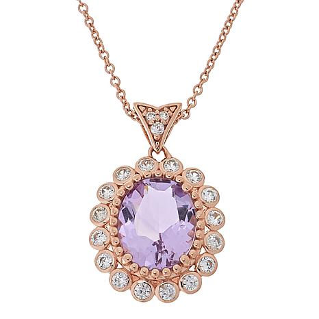 "As Is" Colleen Lopez Gemstone Scalloped Halo Pendant with Chain