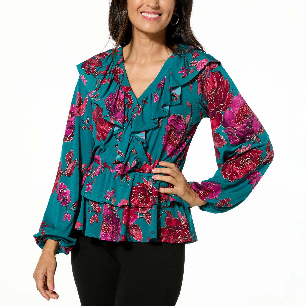 "As Is" Colleen Lopez Printed Knit Ruffle Blouse