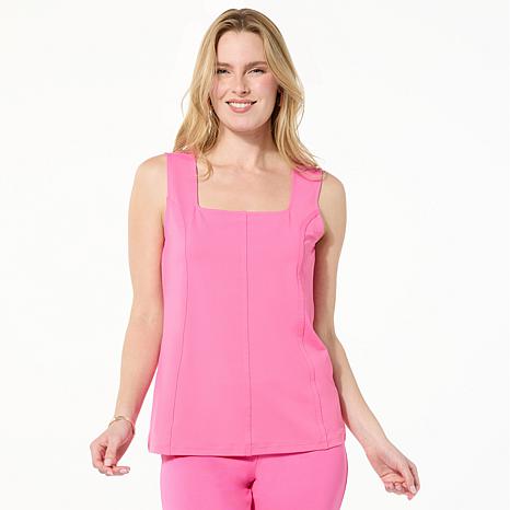 Lounge or layer in this comfy corset-style tank top from Colleen Lopez. A square neckline and corset-style princess seams crafted in a stretchy jersey knit fabric add a slimming appeal to your favorite foundation pieces.
