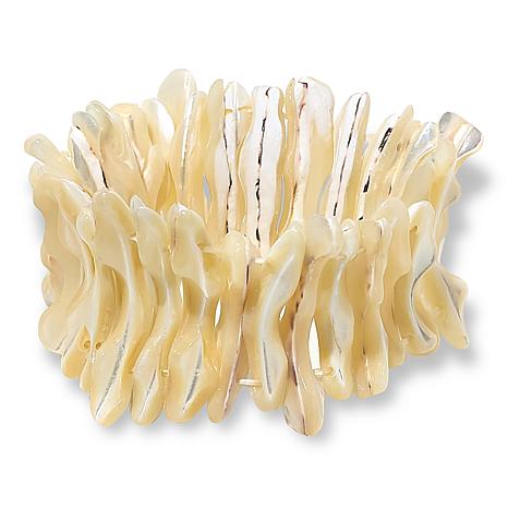 - Freeform mother-of-pearl shells; single-row stretch bracelet