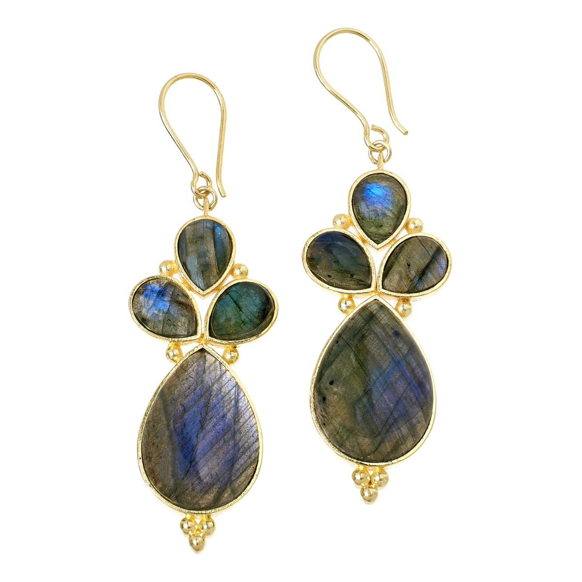 Three glossy cabochons cluster over top the larger cabochon you'll find in this gem-intensive drop—a style that's especially fun for pairing with chic updos and casual, pulled-back hair.