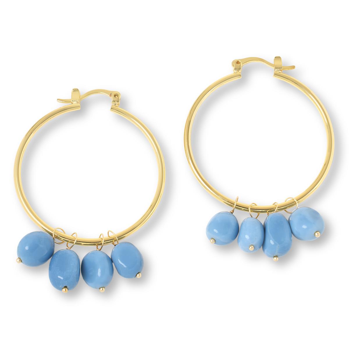 Pretty, freeform opals swing and sway from the slender, sunny loop forming this breezy, everyday hoop.