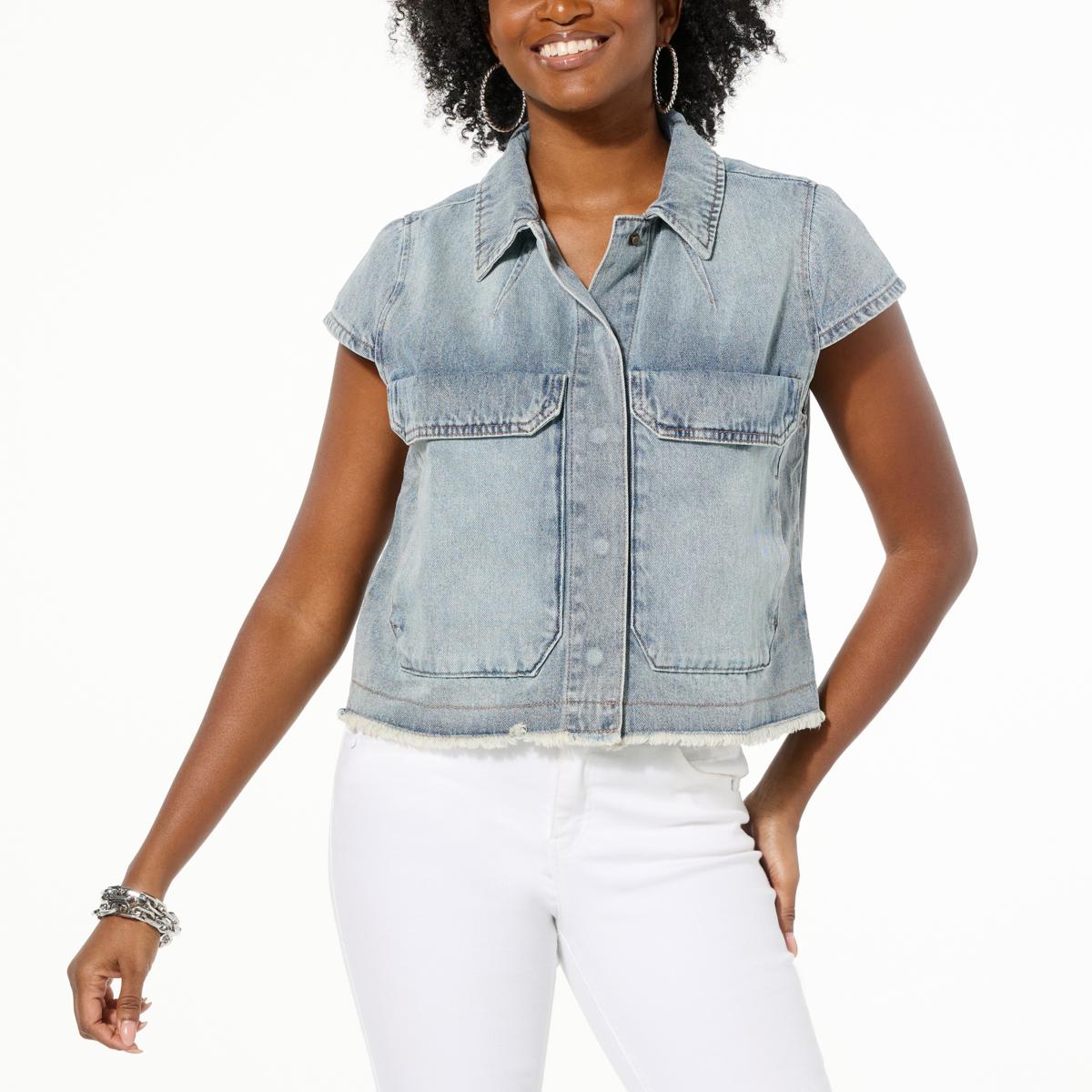 This cropped denim vest gives you just the right amount of coverage and style. Layer it over any of your wardrobe staples for ensembles that become your signature "wow" looks.