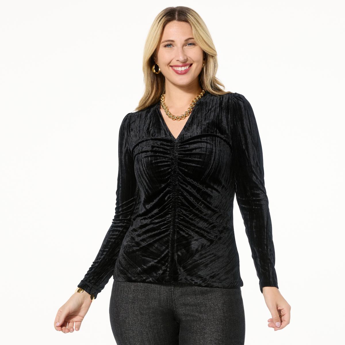 "As Is" DG2 by Diane Gilman Crushed Velvet Ruched Front Top