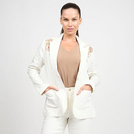 "As Is" DG2 by Diane Gilman New Classic Stretch Embellished Denim Blazer