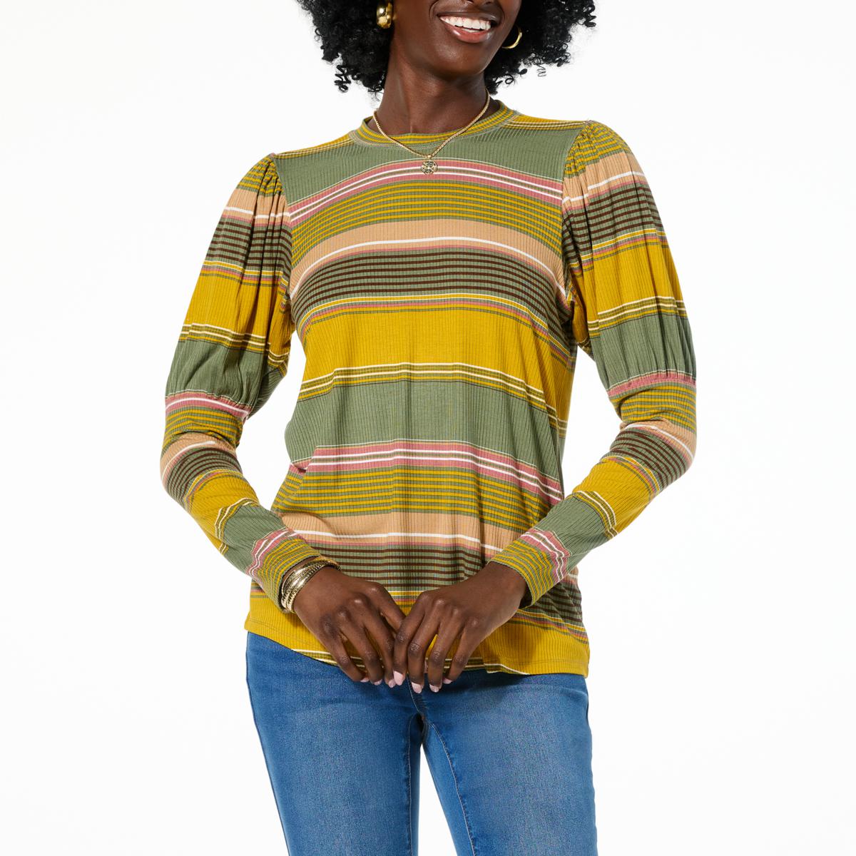 "As Is" DG2 by Diane Gilman Rib Striped Knit Juliet-Sleeve Top