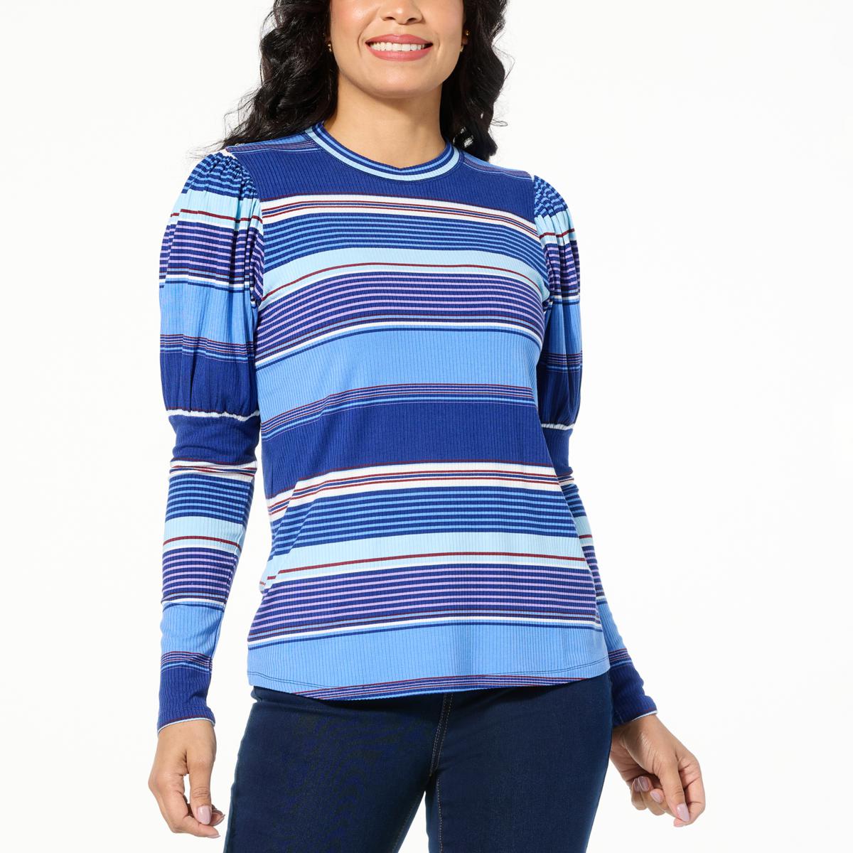 "As Is" DG2 by Diane Gilman Rib Striped Knit Juliet-Sleeve Top