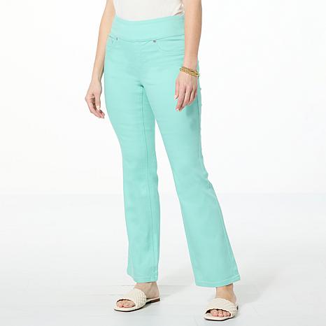 Build an oh-so-comfortable and oh-so-chic forever wardrobe with statement-making basics (no, it's not an oxymoron) like these classic pull-on bootcut jeans. Designed with an extra-wide comfort waistband that slims and trims, and Diane's signature virtual stretch denim fabric with fabulous stretch, recovery and "bounce-back" technology, this ultra-flattering design can be paired with virtually any top, blouse, sweater, shoe, or boot in your closet.