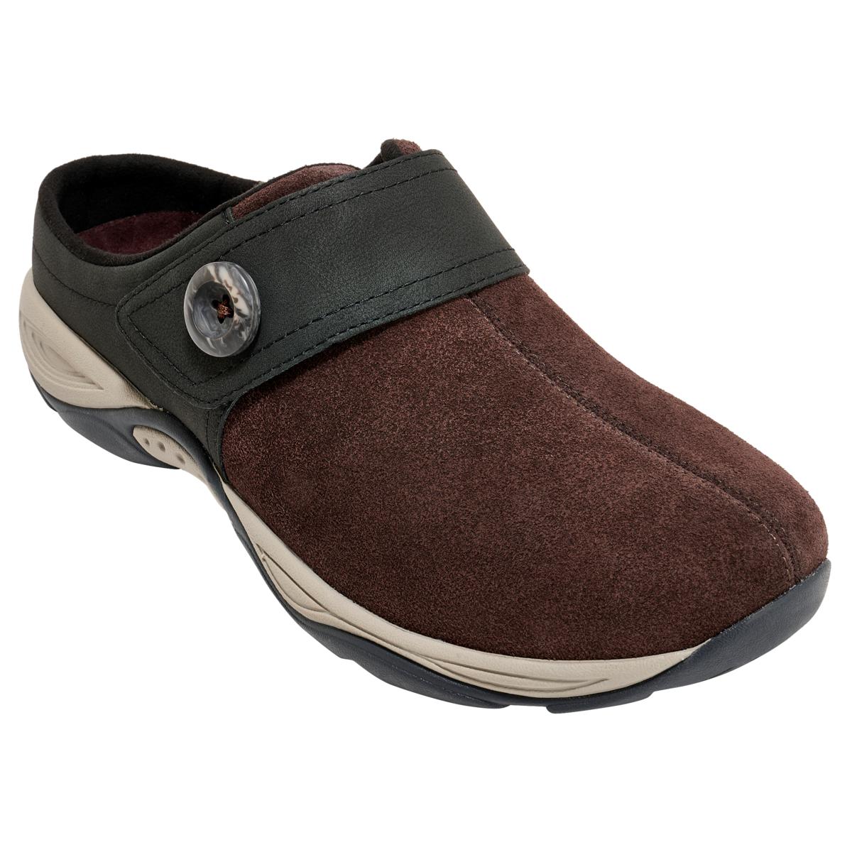 Step up your comfort game in the Easy Spirit Edline casual mule. Crafted of soft suede, it features a slip-on silhouette and a cute button detail, plus the superior arch support and durable outsole you expect from Easy Spirit!