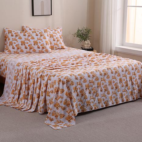 Cozy up with this 100% cotton sheet set from Emryn House. Featuring wonderfully detailed designs, the set includes a flat sheet, fitted sheet, and pillowcases for a stunning look.