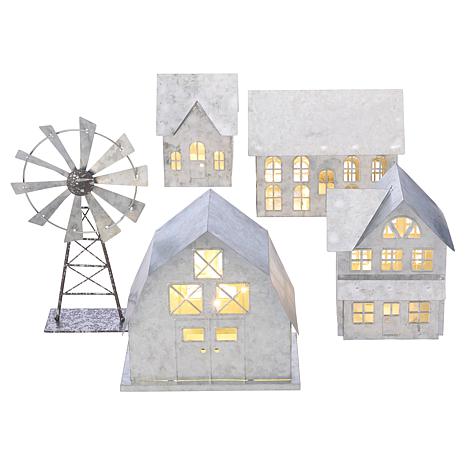 "As Is" Emryn House Lit Galvanized 5-piece Farmhouse Village