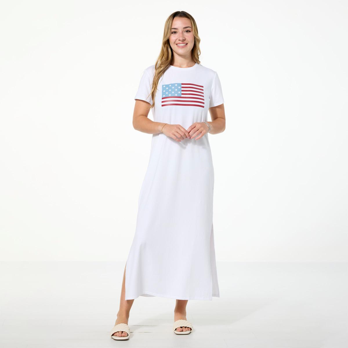 "As Is" G by Giuliana Americana Knit Graphic Maxi T-Shirt Dress