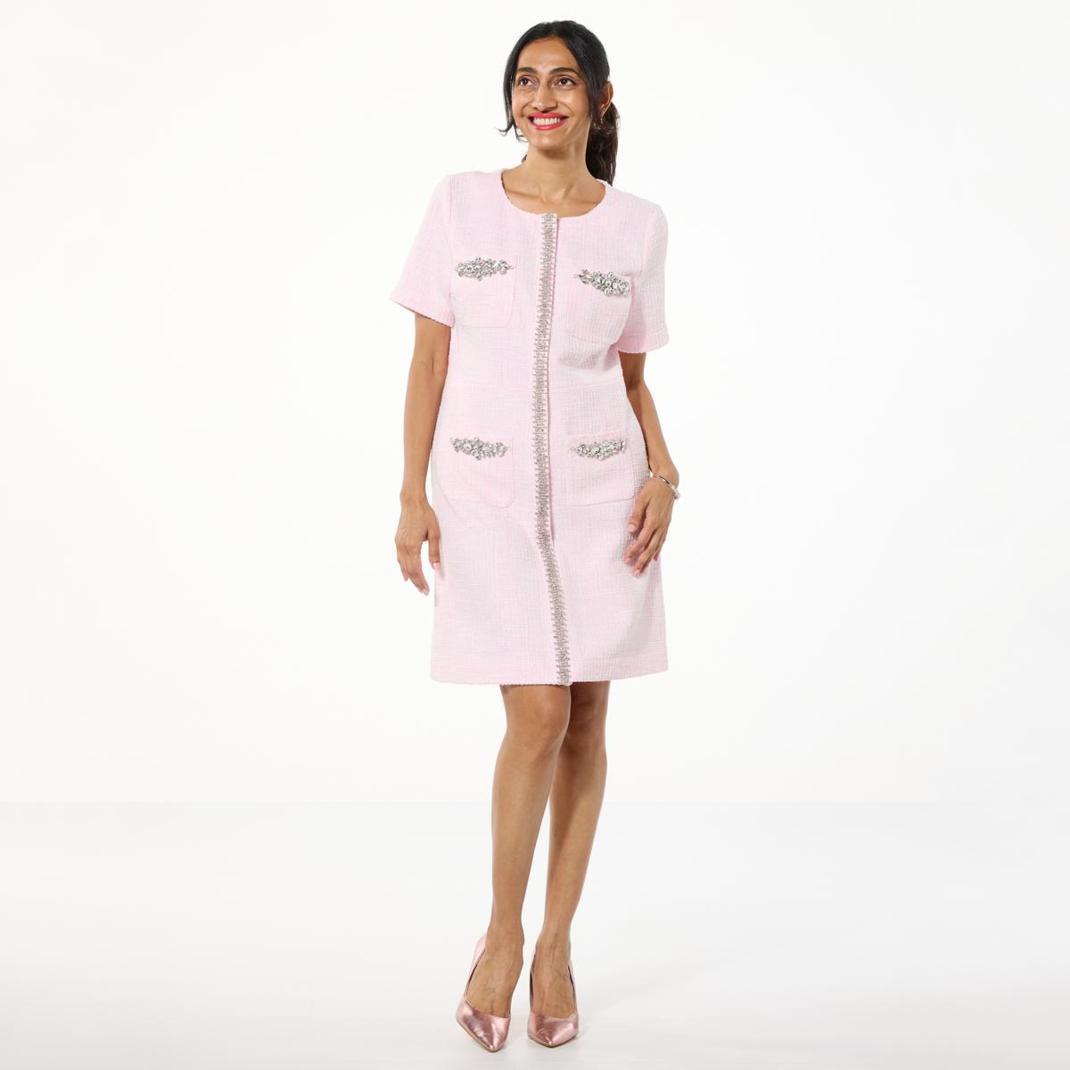 "As Is" G by Giuliana Black Label Embellished Bouclé Tweed Knit Dress