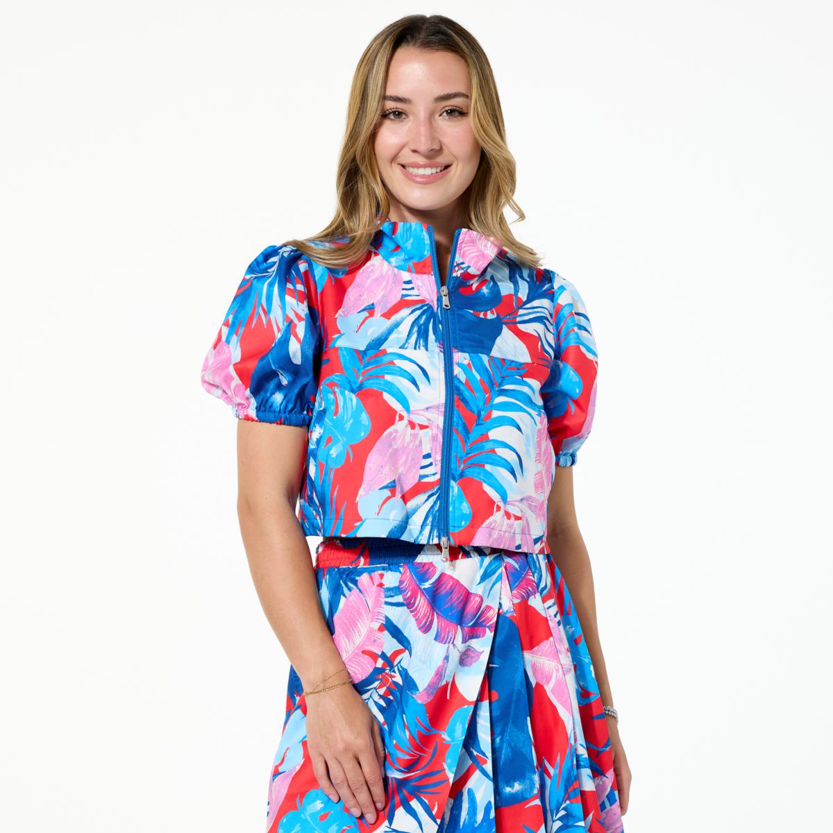 "As Is" G by Giuliana Court to Resort Printed Puff-Sleeve Cropped Jacket