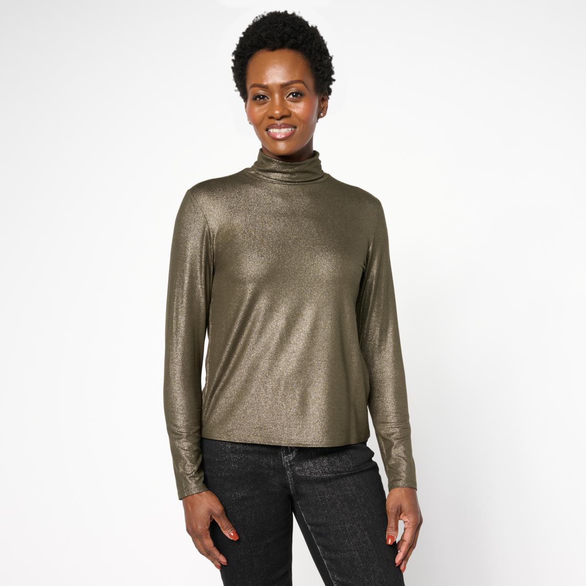 "As Is" G by Giuliana Foiled Ecolux Knit Turtleneck Top