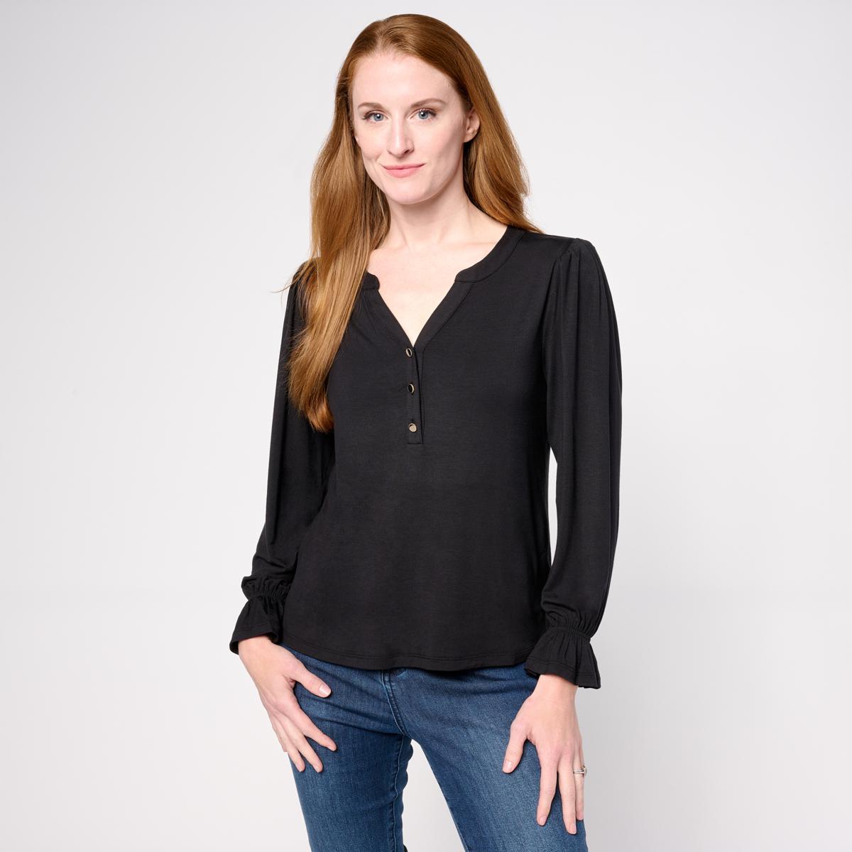 "As Is" G by Giuliana Knit Top with Puff Sleeves