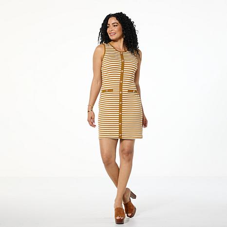 "As Is" G by Giuliana Striped Rib Knit Button-Front Sleeveless Dress
