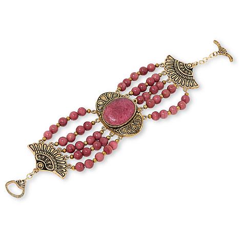 "As Is" GemHues Bronze Gemstone Textured Beaded Statement Bracelet